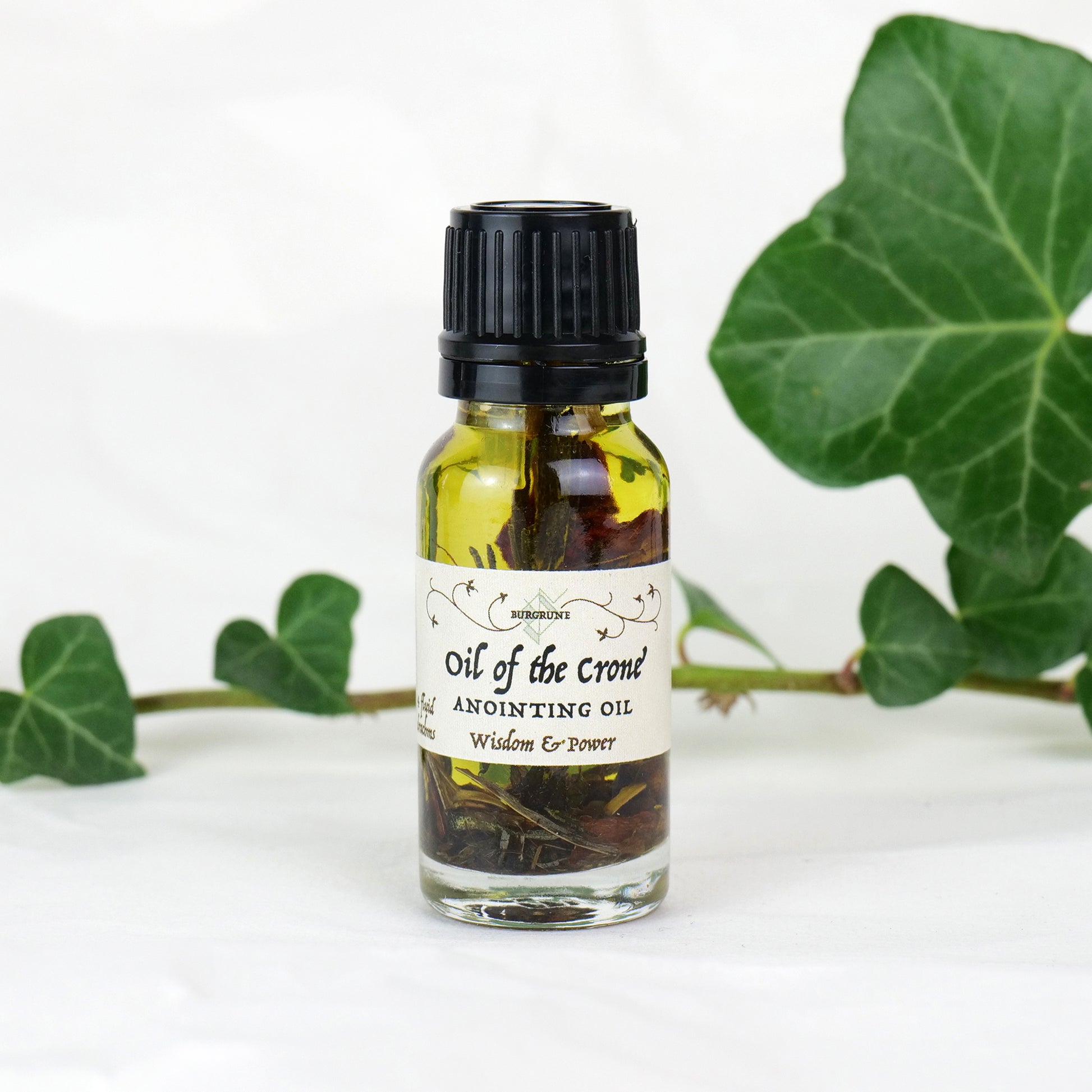 Anoint pulse points, candles, or ritual tools during meditation, shadow work, or rites of passage. Use to release outdated beliefs, strengthen inner resolve, and call on the Crone’s guidance for wisdom and resilience.